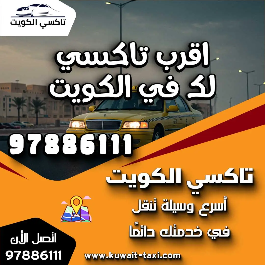 نعم، يمكنك الحصول على اقرب تاكسي لك في الكويت خلال دقائق عبر الاتصال المباشر بالرقم الموحد 97886111. أفضل طريقة هي استخدام هذا الرقم الذي يربطك مباشرة بنظامنا الذكي لتحديد موقعك تلقائيًا وإرسال السائق الأقرب جغرافيًا من أسطولنا المنتشر في جميع أنحاء الكويت، مما يضمن أسرع استجابة ممكنة.